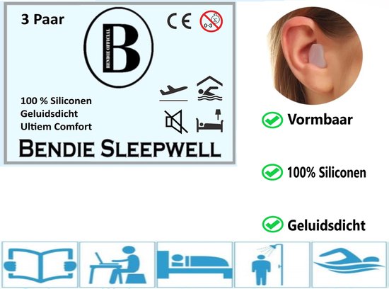 De oordoppen zijn gemaakt van hoogwaardig siliconen en hebben een uniek design waardoor ze comfortabel in je oren passen. Ze vormen zich naar je oren en verminderen zo het lawaai. De oordoppen bieden een goede balans tussen het isoleren van geluid en het behouden van een natuurlijke klank. Zo kun je ontspannen en genieten van je rust. De Bendie Sleepwell oordoppen zijn verkrijgbaar in 6 stuks en hebben een verpakking met hygiënekapjes. De oordoppen zijn bovendien herbruikbaar en eenvoudig schoon te maken met een milde zeepoplossing. De verpakking is eenvoudig mee te nemen waardoor je altijd je oordoppen bij je hebt. Geniet van je rust en slaap zoals je dat verdient met de Bendie Sleepwell oordoppen. Ervaar geen geluidsoverlast en slaap door terwijl je partner snurkt. De siliconen vormbare oordoppen helpen je om een rustige en comfortabele slaap te hebben. Bestel vandaag nog!